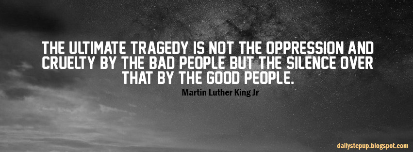 The ultimate tragedy is not the oppression and cruelty by the bad people but the silence over that by the good people. - Martin Luther King Jr